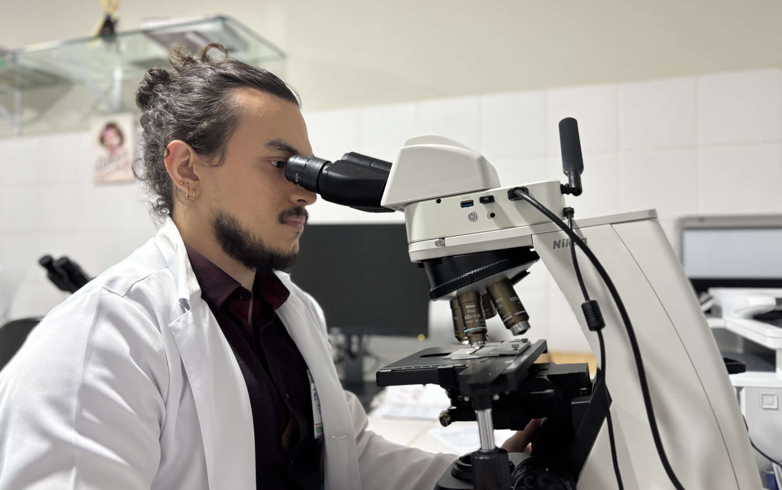 Residente utiliza equipamento recém-adquirido no Centro de Referência em Diagnóstico do Câncer Infantil do Hias